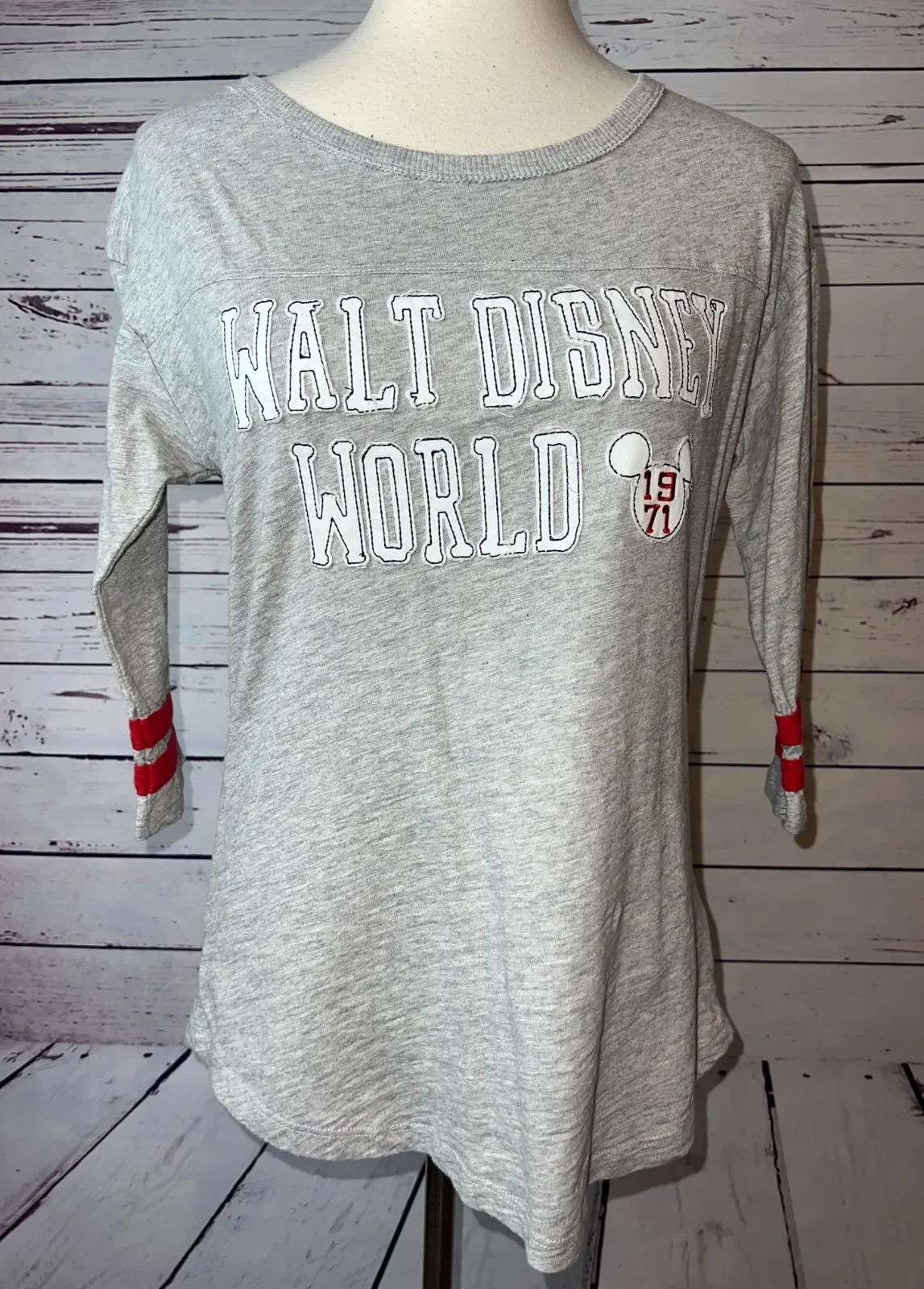 Disney Parks Pullover Baseball Shirt Raglan Sleeve size Small Womens Collegiate Jersey Gray heather... Show more