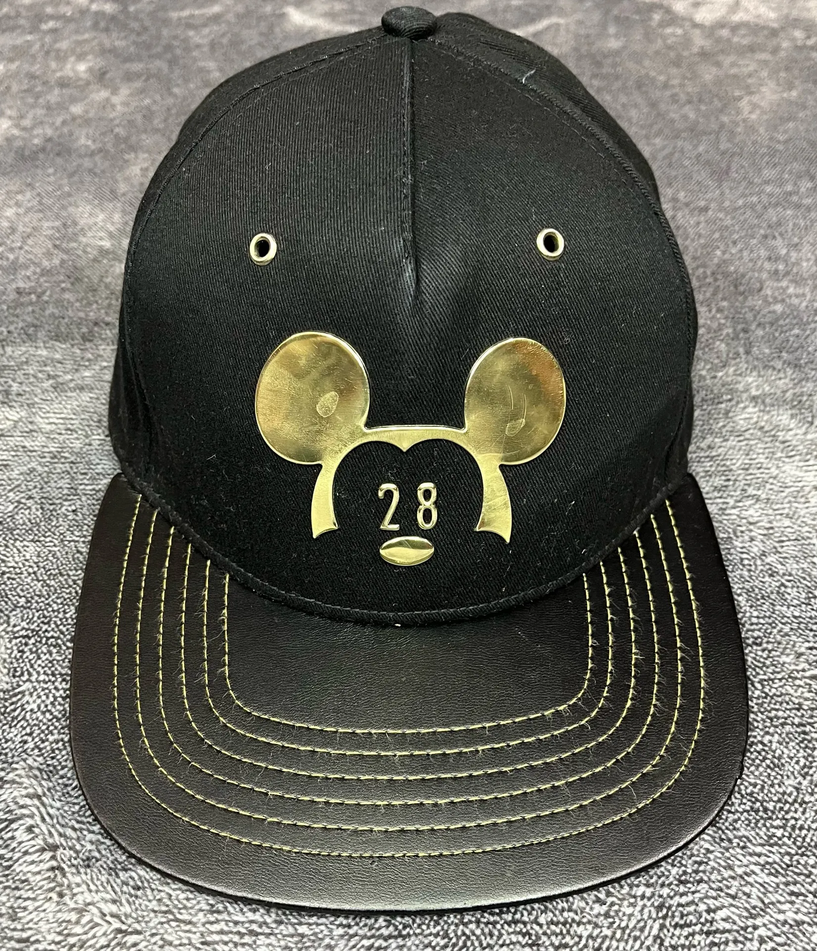 Disney Parks Black & Gold Mickey Mouse 28 Millennial Faux Leather Snapback Hat - $25 - From Paola