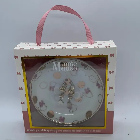 Excellent condition Beautiful jewelry tray and 4 sets of earrings Minnie Mouse theme Brand new in... Show more