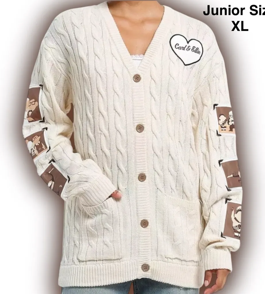 Disney Pixar Up Photographs Cable Knit Cardigan Product Details: 100% acrylic Wash cold; dry flat... Show more
