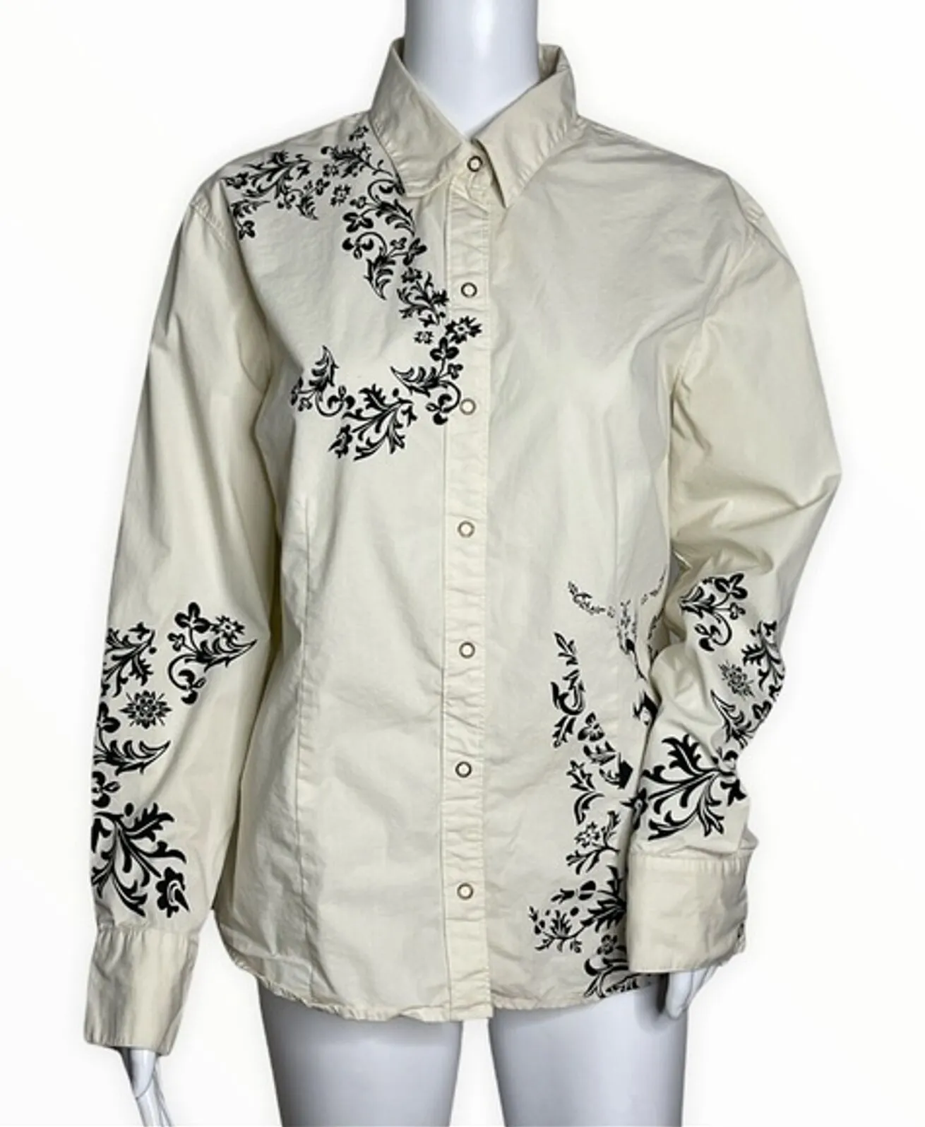 Disney Store Shirt Womens Large Ivory Black Floral Western Button Up Tinkerbell Womens Size Large... Show more