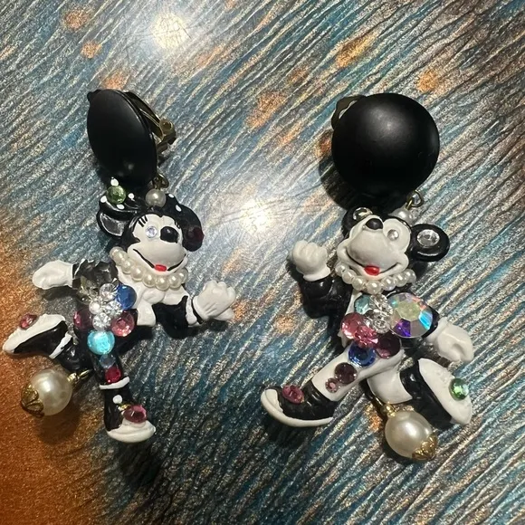 VTG Wendy Gell Mickey and Minnie mouse crystal made in Germany clip On Earrings Very hard to find pa... Show more