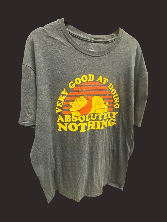 This Disney T-shirt, featuring a humorous Winnie the Pooh graphic, is crafted from a cotton-polyeste... Show more