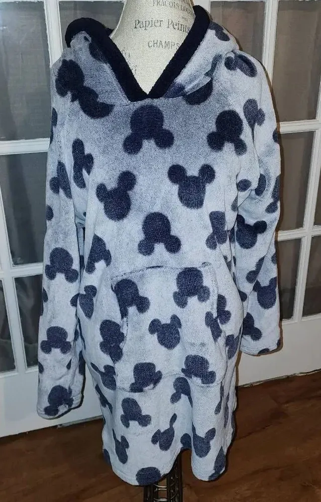 Disney Womens Gray Blue Mickey Mouse Faux Fur Hoodie Dress Large Bust: 50" Arms: 25" Length: 33" Gen... Show more