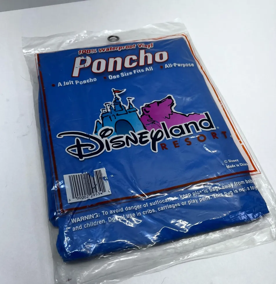 Vintage Disneyland Resort adult rain poncho. It is made of 100% waterproof blue vinyl and is one siz... Show more