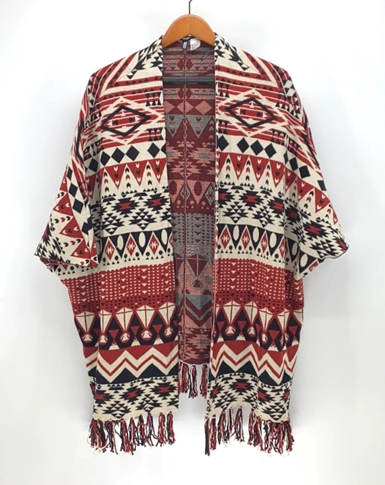 sweater poncho indigenous fringe accents 3 quarter sleeves sz small oh no darling you wont offend... Show more