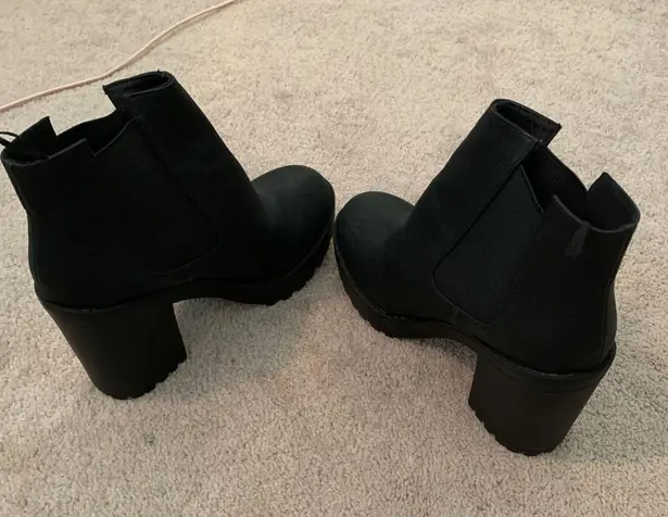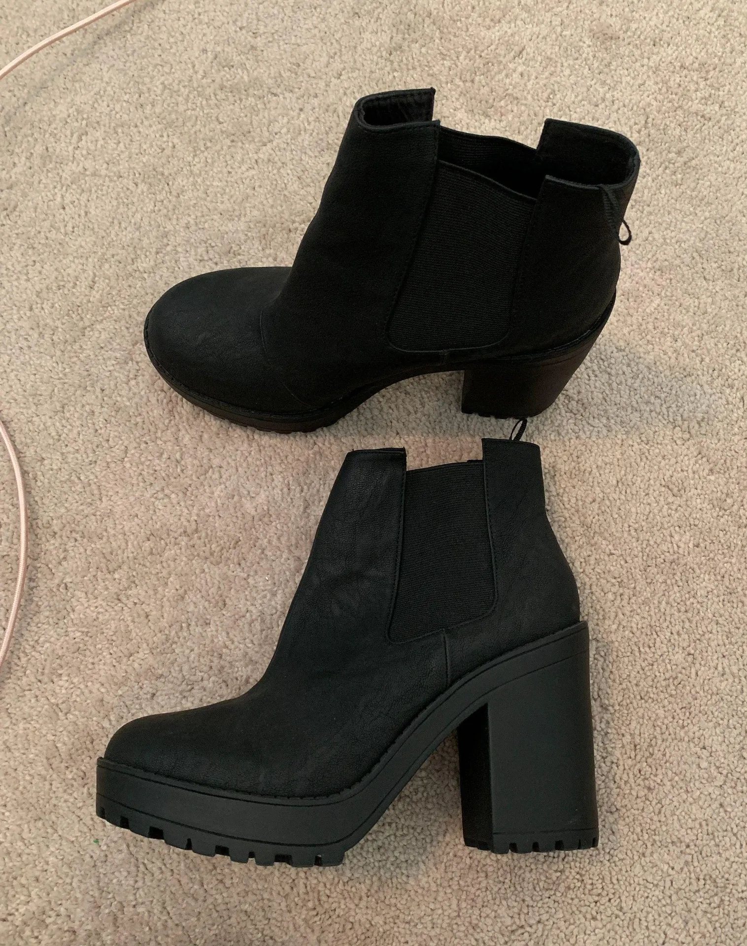 Never worn outside, in great condition. Stretch side panels to help slide boot on. Matte faux leathe... Show more