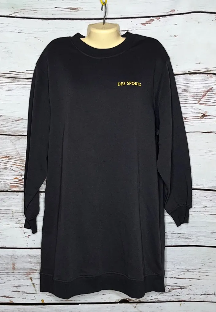 Divided by H&M Size L Dark Gray - Yellow ‘Des Sports’ Fleece Lined Tunic Sweatshirt Dress. Long Slee... Show more