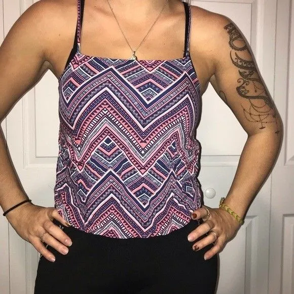Fits Like a Womens Small Spaghetti Straps Sleeveless The Aztec Patterned Blue Pink and Purple Crop... Show more