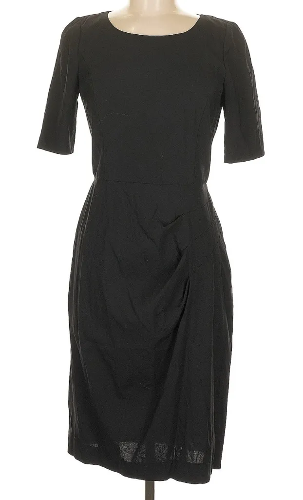 DKNY Black Wool Ruched Gathered Classic Midi Dress Size 6 Small S This black dress features a class... Show more