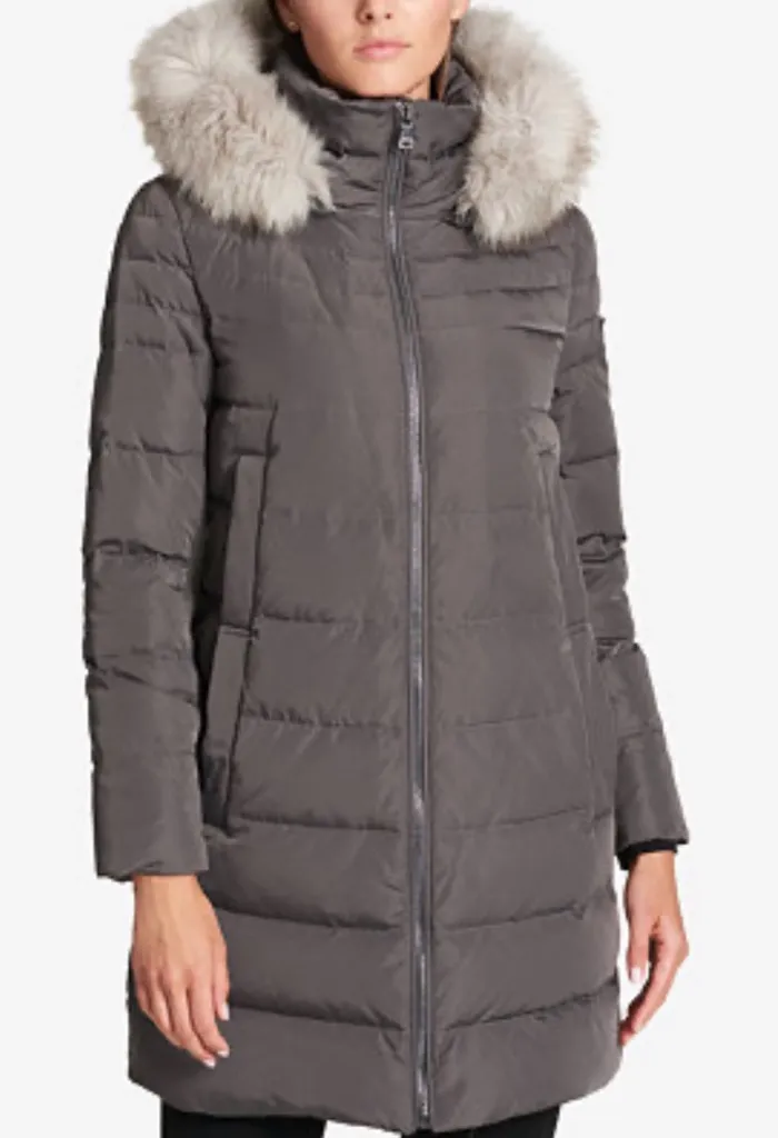 The DKNY Faux-Fur-Trim Hooded Puffer Coat in size XS is a stylish and cozy winter outerwear choice f... Show more