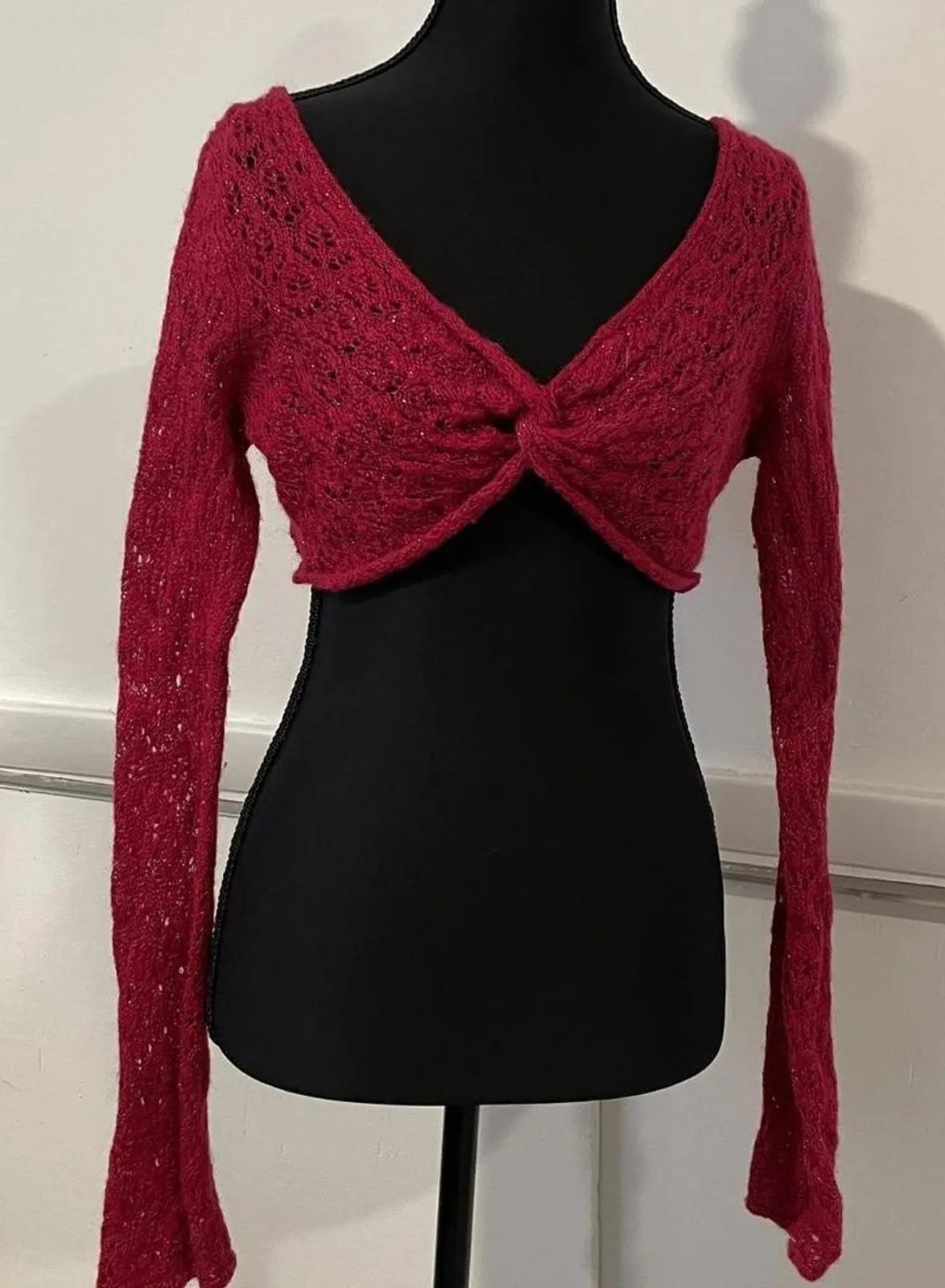 has metallic thread. mohair and wool blend Red crochet long sleeve top #crochet metallic thread, m... Show more
