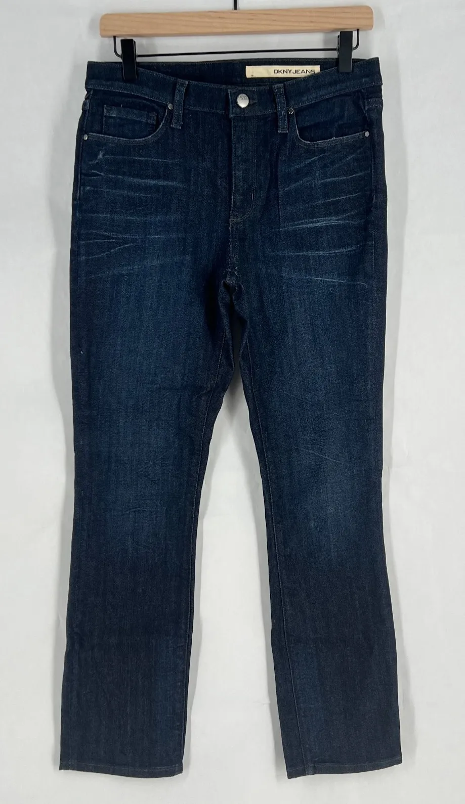 Description DKNY Skinny Leg Jeans Womens 6 Blue Whiskering Denim Cotton Dark Wash Mid Rise. Produ... Show more