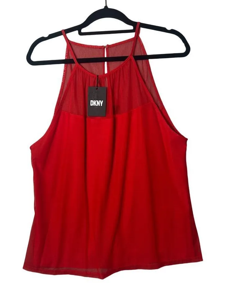 DKNY Top Womens L Red Poppy Sleeveless Mesh Top Xmas Party Event Casual NEW Features: Mesh Overlay... Show more