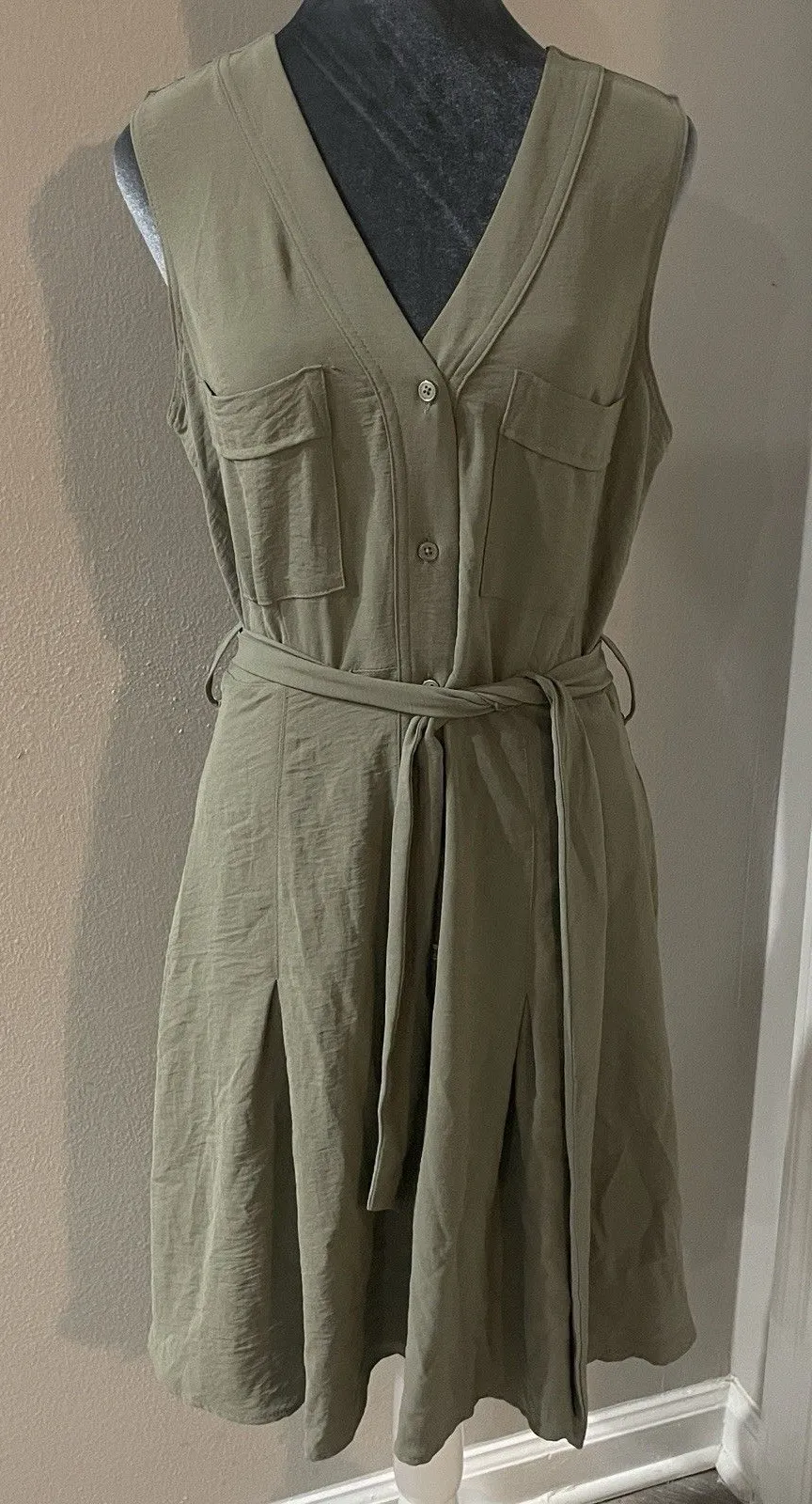 This DKNY Women's Olive Green Button Front V-Neck Tank Dress is a stylish and versatile option for v... Show more