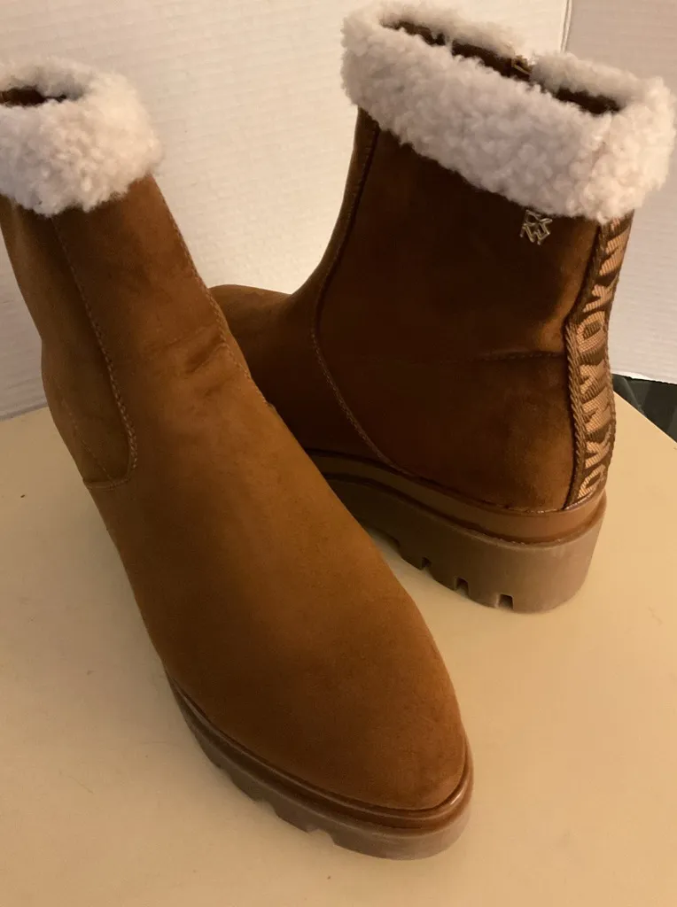 Cozy DKNYC boots with plush white fur trim. Ideal for winter warmth and style. DKNY women suede and... Show more