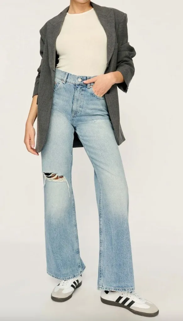 DL1961 Desi Boot High Rise Vintage Jeans - Size 30 Preloved Color: Fountain MSRP: $229.00 NOTE: oversized rip - sold AS-IS Zip fly with button closure Five pockets silhouette Contrast stitching Belt loops Faded, destructed details at front Relaxed fit High-rise fit Bootcut leg below the knee 100% cotton Imported tags: designer, denim, jeans, distressed, destroyed, ripped, casual, high rise, high waist, wide leg, straight leg Size: Womens 30 Condition: Pre-Owned Good
