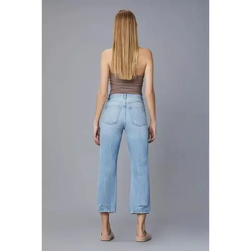 Emilie is an ultra high-rise, vintage straight fit with a 27" inseam that is relaxed from the hip through the leg. Size 32 High rise: 11.5" Ankle inseam: 27" Leg opening: 16" Fabric: Heavyweight, non-stretch denim Fading and whiskering Button fly Distressed hem Full length 5-pocket styling Shell: 100% cotton Wash cold Imported, Pakistan