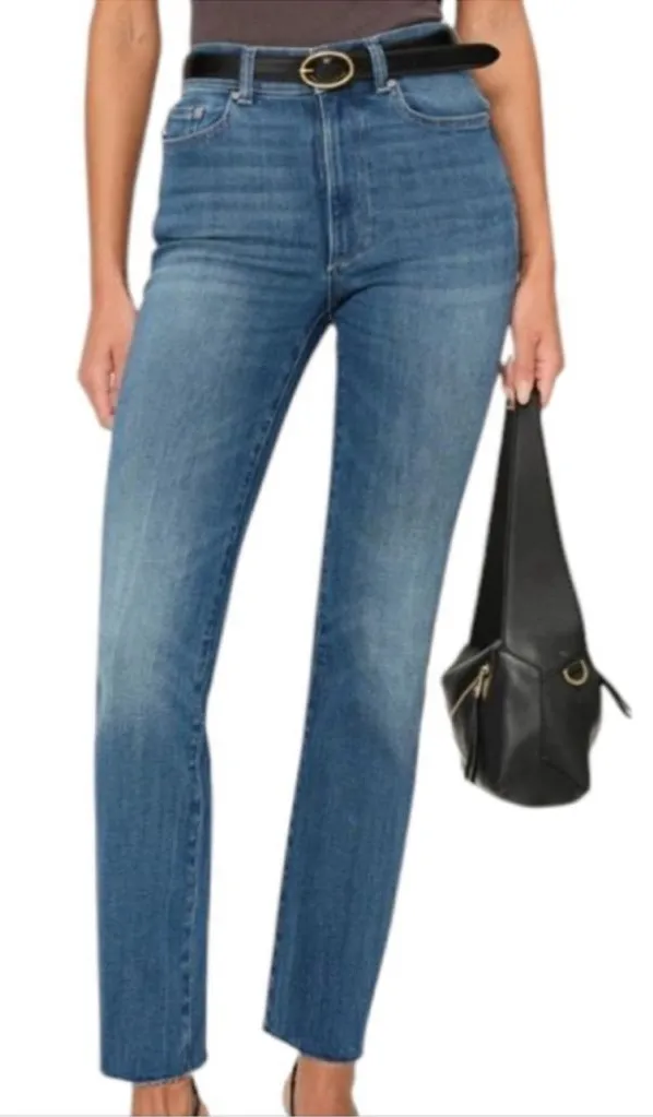 Excellent condition. Medium blue wash. Raw hem. Straight leg. Zip fly button closure. 29” inseam. Instasculpt fabric designed to smooth, sculpt and conform to your body. Subtle fading worn in look. Size 32 Cotton, polyester, lycra Tags: premium, five pocket denim, designer jeans, stretch, fitting, flattering, classic, straight leg, retro, preppy, everyday style jeans, bohemian, revolve, raw hem