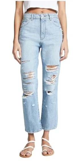 IN EXCELLENT PRELOVED CONDITION SIZE: 26 Fabric: Denim Fading Whiskering Distressed Straight-cut style Cropped profile Hidden zip at fly Button at waist Patch back pockets Slant hip pockets Shell: 100% cotton Measurements: Waist: 15” Rise: 12” Inseam: 26” ***all measurements are approximate