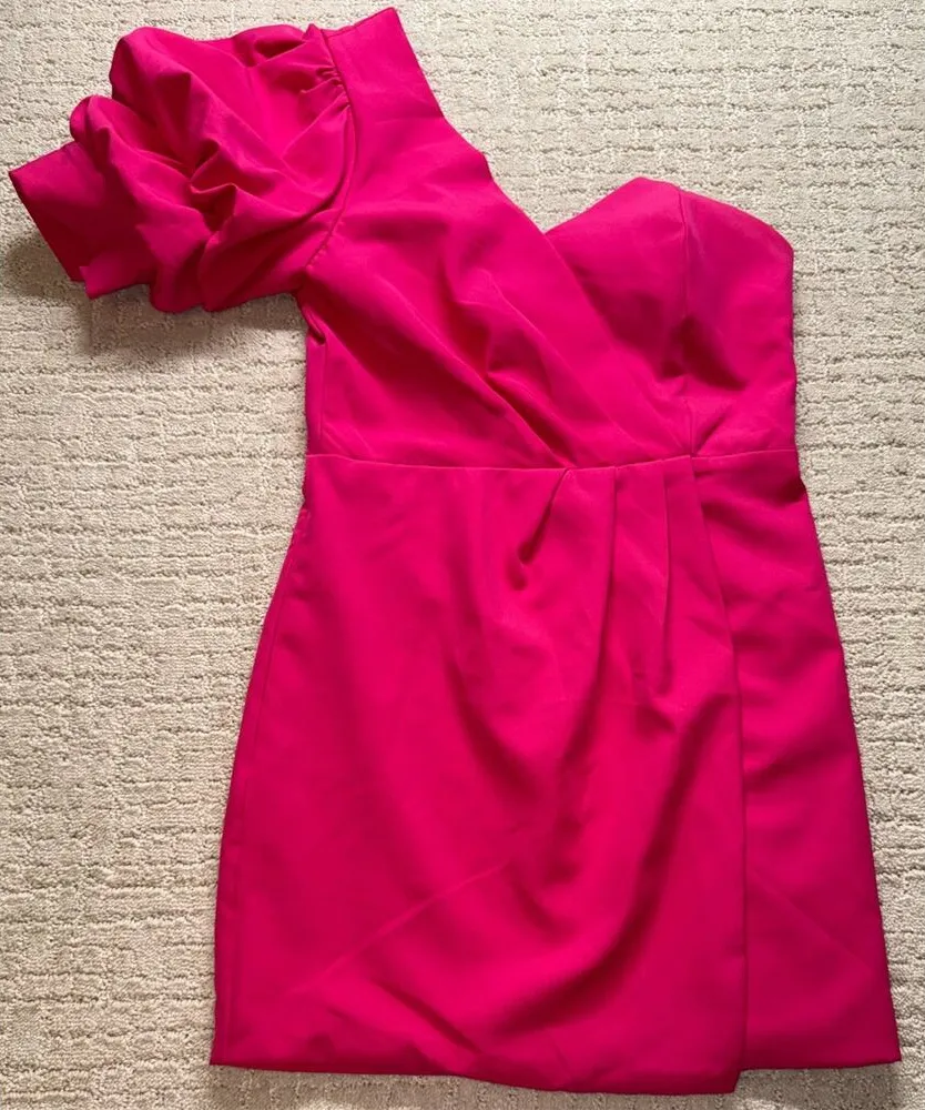* Brand: DO+BE * Style: One Shoulder Ruffle Dress * Color: Hot Pink * Size: Women’s Medium *... Show more