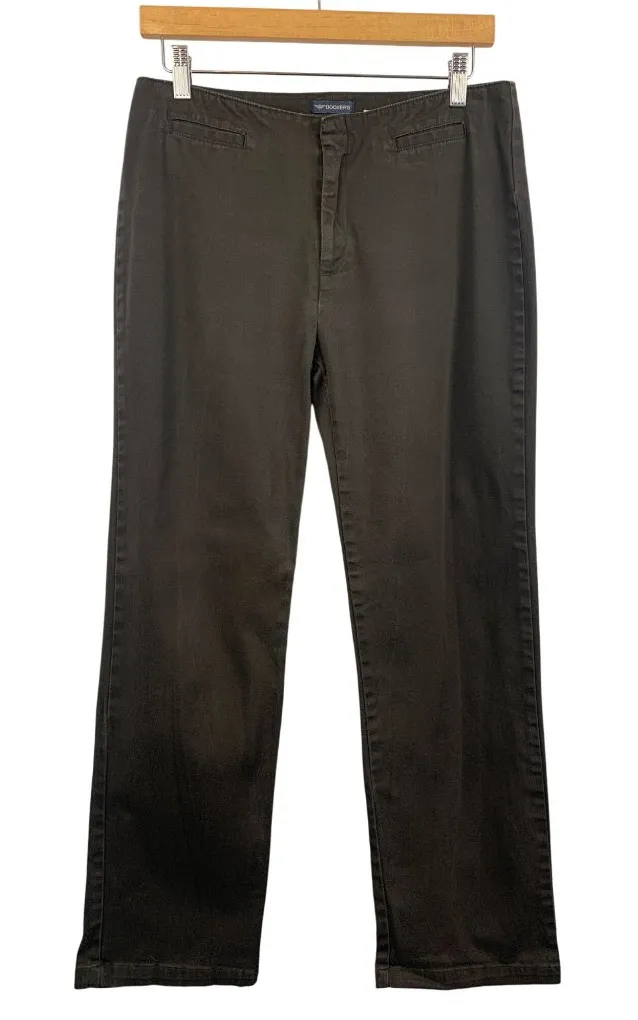 Elevate your wardrobe with these versatile Dockers black straight-leg pants. Designed for comfort and style, these pants offer a flattering fit with a touch of stretch, ensuring ease of movement throughout your day. Perfect for both casual and professional settings, these pants are a wardrobe essential. • Button and zip closure • Two front pockets • Stretch material for comfort • Machine washable Length: 38” Inseam: 28” Waist: 15” Hip Bust: 18” Ankle: 8” Features: • All Season • Solid • Cambodia • Machine Washable Size: Womens 10S Condition: Pre-Owned Like New