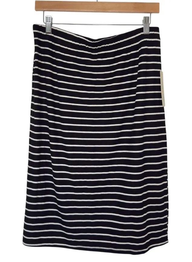 Doe & Rae Large Black Ivory Stripe Midi Elastic Waist Knit Skirt NWT Office - $25 New With Tags - From Satara
