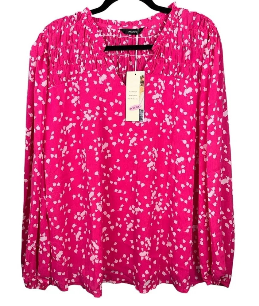 NWT CONDITION: Top is NEW WITH TAGS, no stains and no holes. SIZE: Extra Large Color: Pink MEASUREMENT: Please see photos for all measurements before purchasing. All measurements were taken lying flat. Materials: 100% Polyester Made in China Thank you for stopping by my shop and hope you have a fantastic day!❤️ style tags: Floral, Bohemian, office, party, luncheon, date night, girls night out,
