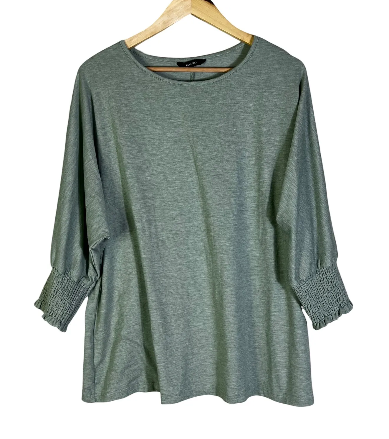Department: Women Style: Tunic Material: Polyester Blend, Viscose Blend, Elastane Neckline: Round Neck Sleeve Length: 3/4 Sleeve Sleeve Type: Dolman Sleeve Pattern: Solid Accents: Pleated Features: Oversized Fit: Relaxed Fabric Type: Jersey Occasion: Casual Closure: Pullover Season: Spring, Fall, Summer Keywords: DOKOTOO, plus size, dolman sleeve, smocked cuffs, sage green, women's top, casual, workwear, comfortable, versatile, relaxed fit, 3/4 sleeve