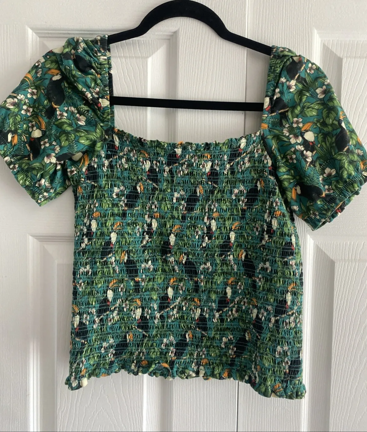Dolan Womens Large Toucan Smocked Top Resort Euro Resort Tropical Vacation Green - $29 - From Arielle