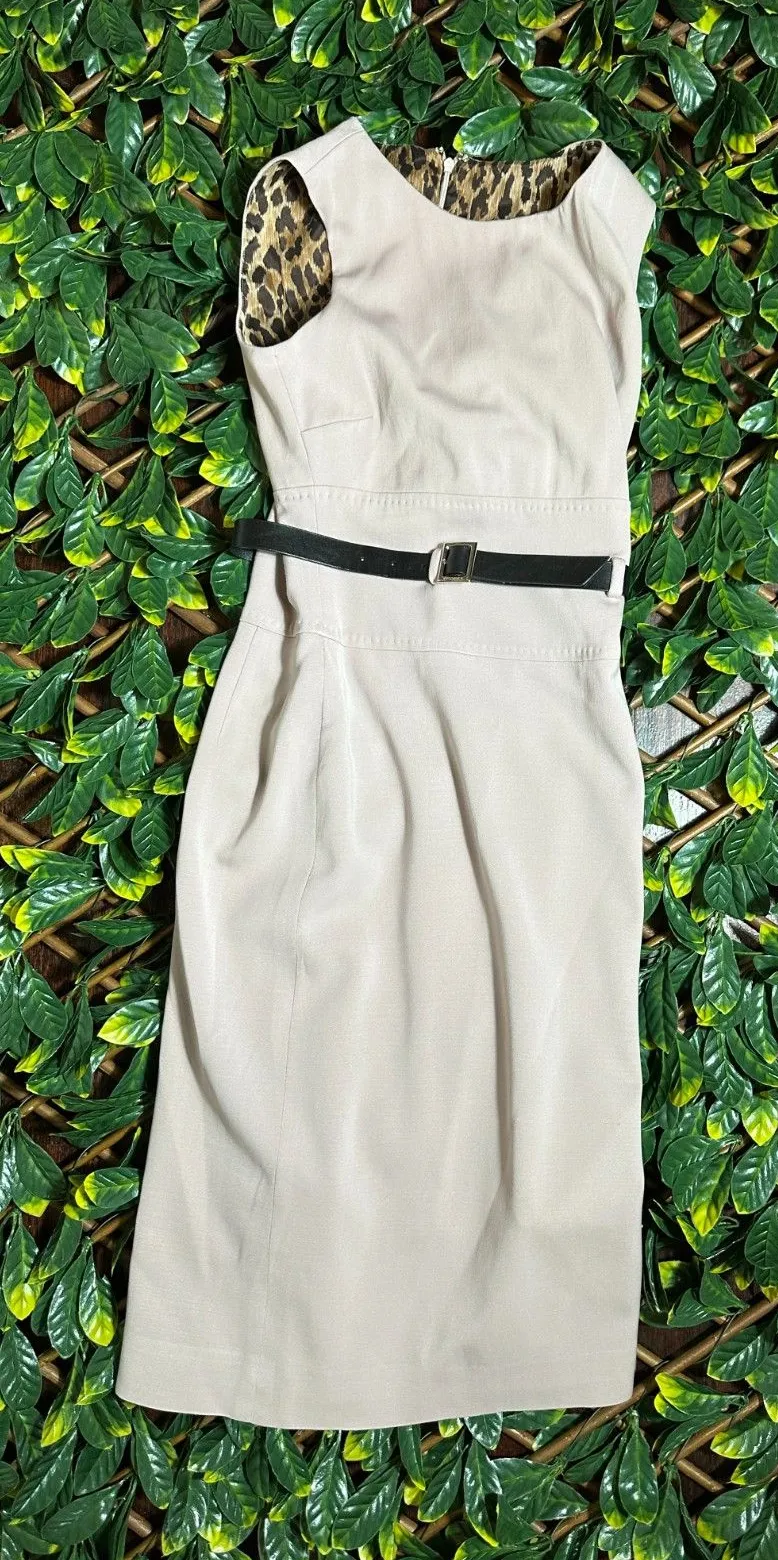 DOLCE AND GABBANA Beige Minimalist Belted Midi Dress Fits like Size 2 Tan - $81 - From Thrifted