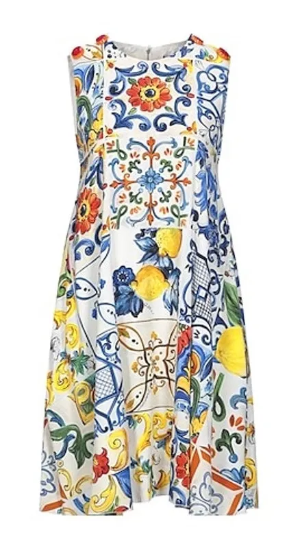 Dolce & Gabbana Majolica Print A-Line Silk Dress Womens Size EU 46 US 12 White Full lined Zip clos... Show more