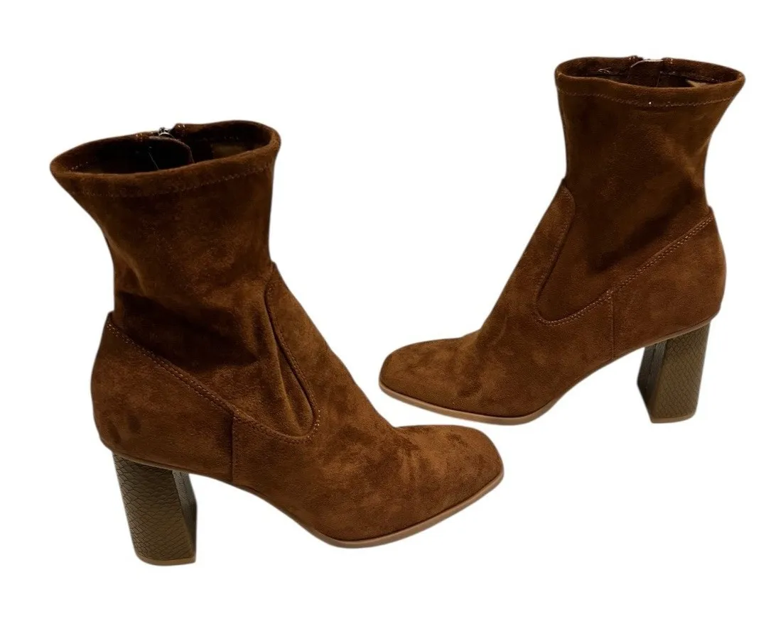 Dolce Vita Bootie Mono Cognac Vegan Suede Ankle Boots Block Heel NWOB 7.5 - $82 - From Melodic