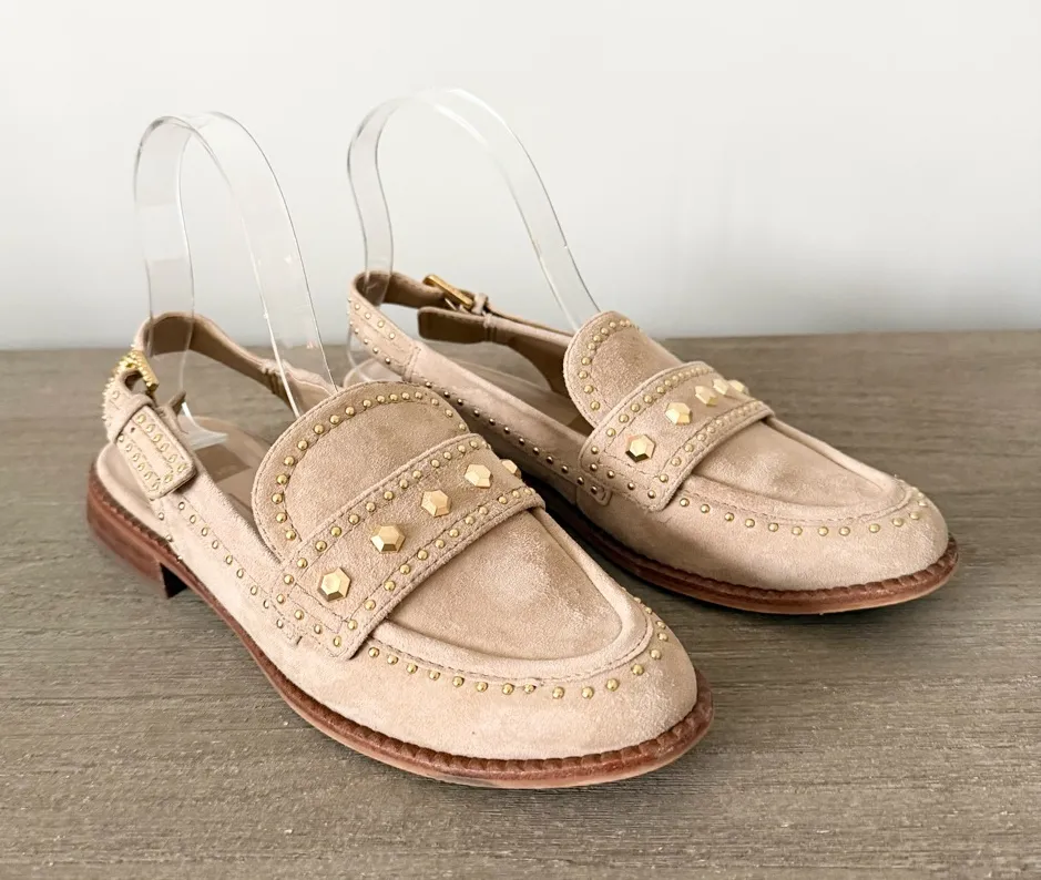 Dolce Vita Hardi Stud Sling Back Loafer in Camel Faux Suede Gold Studs Size 7 Tan - $28 - From Nicole