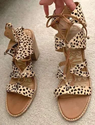 Cute, lace up & adjustable, leopard faux fur block heel. Only wore out to dinner once!