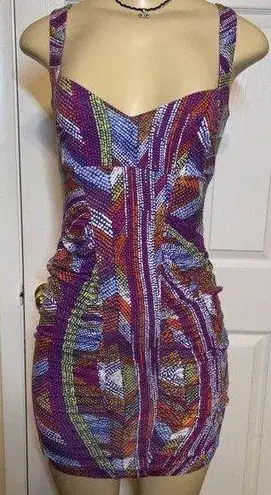 Multicolored dress, furrowed on the sides of the front, uncovered back with crossed straps, nice dre... Show more