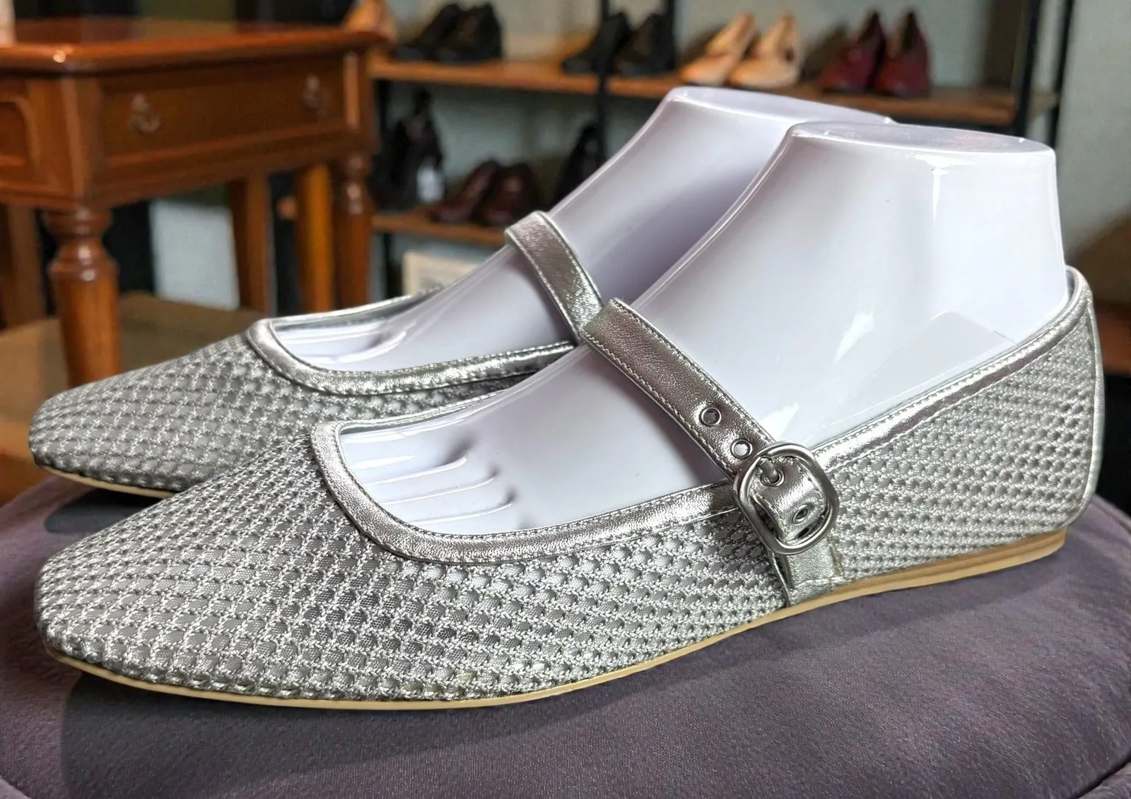 Dolce Vita Rodni Mesh Mary Jane Flats Silver Balletcore Fairy Luxury Career 9.5 - $80 - From Casey