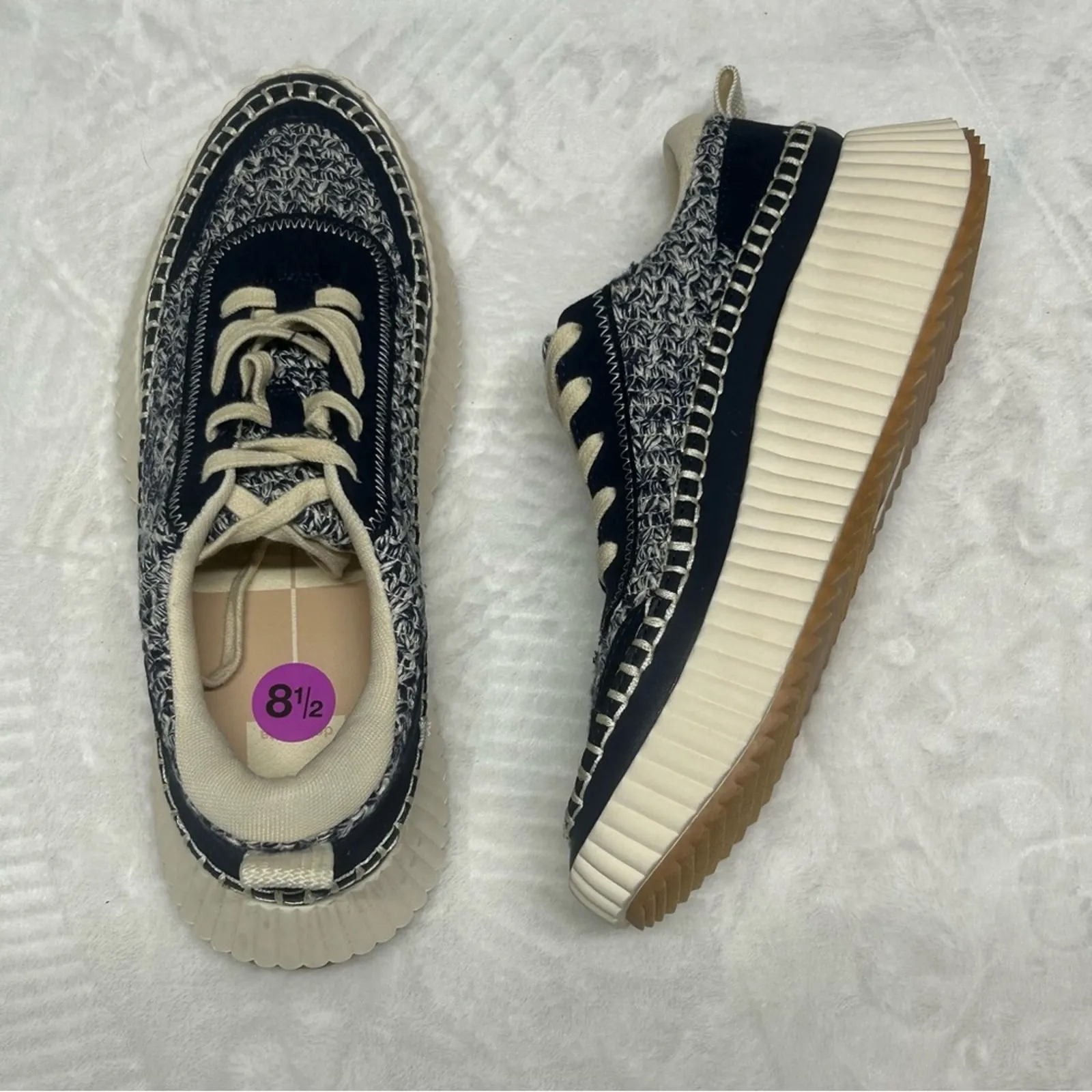 Dolce Vita Sneaker Lace Up Shoes White Blue Woven Elevated On Go Womens 8.5 NEW - $32 - From Jessi