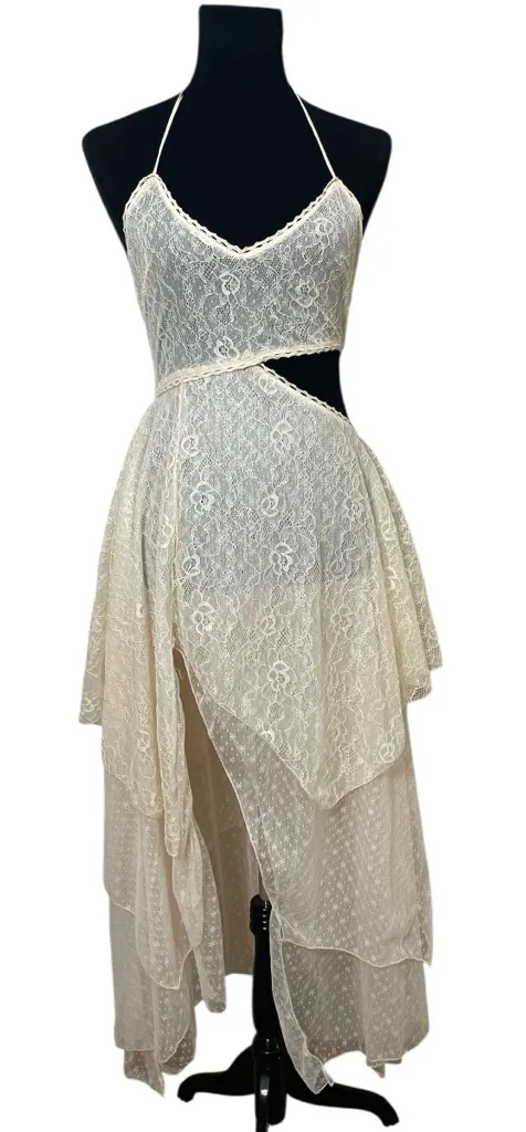 Dolls Kill Current Mood Cream Asymmetrical Cut Out Lace Dress fairy Grunge Size XS - $60 - From Kaleidoscope
