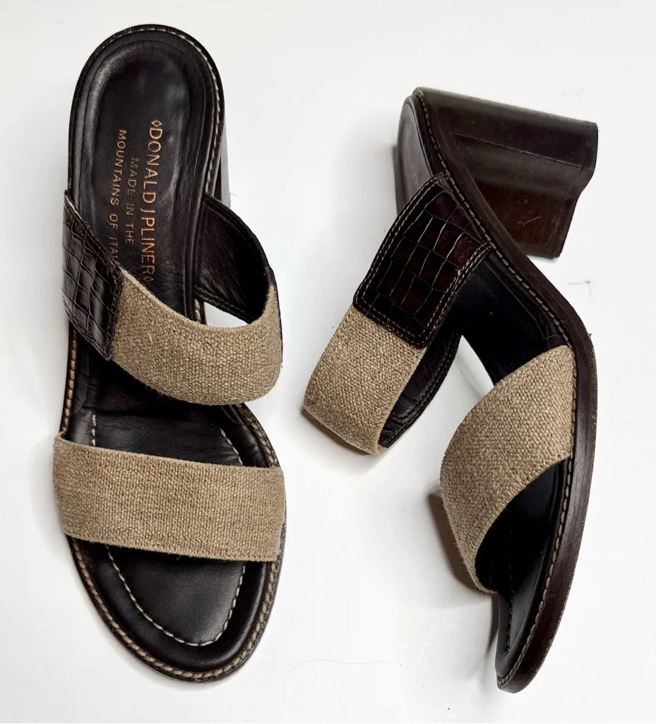 Donald J Pilner Two-Strap Wooden Block Heel Sandals S-455 Sz 7.5 Tan - $42 - From June