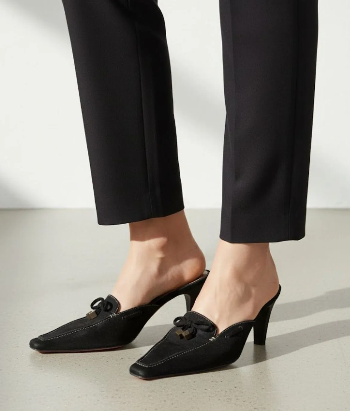 Donald J Pliner "Lona" Black Pointed Square Toe Slides Mules w Heels 8.5 - $50 - From Shelby
