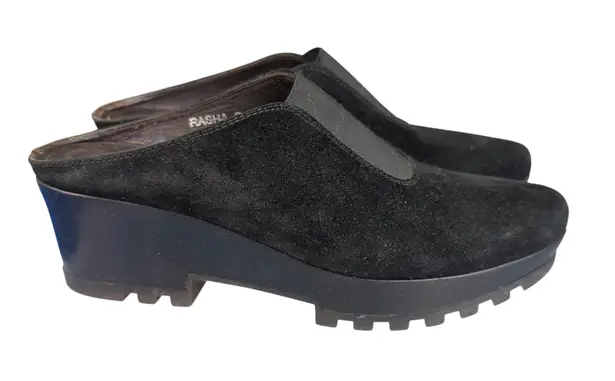 Color: Black Style: Mule Department: Women Upper Material: Suede, Leather Type: Heel Heel Style: Wedge Toe Shape: Closed Toe Heel Height: Mid (2-2.9 in) Pattern: Solid Closure: Slip On Features: Comfort, Lug Sole, Wedge Heel, Slip-Resistant, Breathable Model: Rasha Keywords: Donald Pliner, Suede Mules, Leather Mules, Black Mules, Wedge Heel, Slides, Size 7, Casual Shoes, Comfortable Shoes, Slip On Shoes, Rasha Mules, Lug Sole, Contemporary, Elegant, Vintage Inspired Thanks for checking out my store! I have lots of items available to bundle. Happy to accept offers!