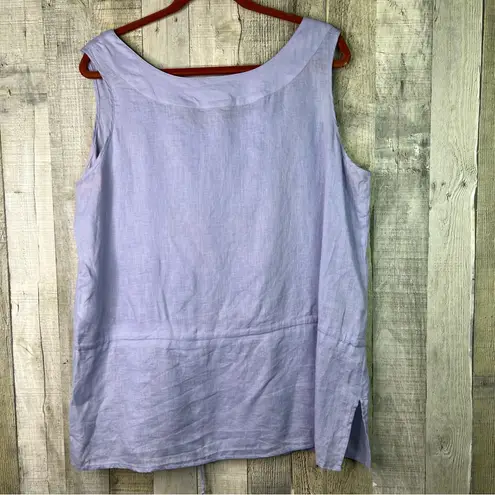 Doncaster Size 1W Tunic Sleeveless Crewneck w/Tie Cinch Waist 100% Linen Blue - $50 - From Ginny