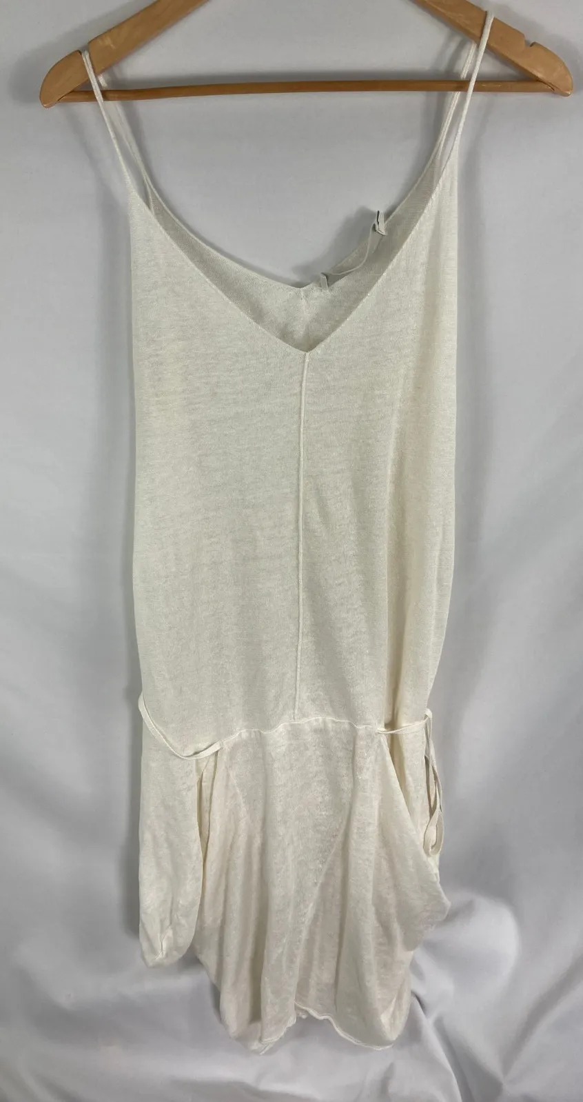 This Donna Karan sleeveless knit coverup is crafted from luxurious Italian yarn. The off-white color is versatile and perfect for layering. The knit construction provides comfort and breathability, making it ideal for various occasions. It is in excellent condition. Grab it now!