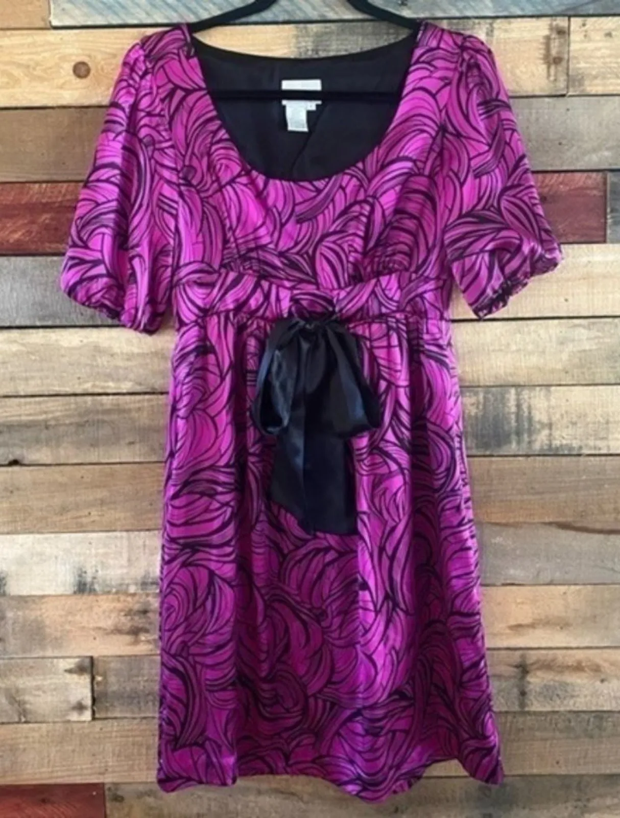 This is good preowned condition. The bottom of the dress has little pinhole size spots around the whole hem (as seen in pictures 7 and 8). Picture 9 shows the inside of hem. I’m not sure if this is just how it was made/stitched or not. The bow belt is adjustable and has zip closure on the side. Approx measurements 16 1/2 inches from armpit to armpit 37 inches from top of shoulder to hem