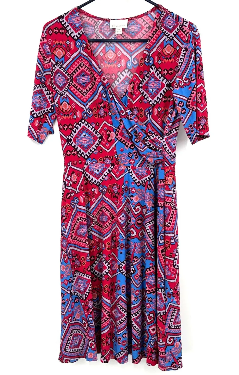 Donna‎ Morgan Size 6 Petite Faux Wrap Style Short Sleeve Dress Red Blue Pink - $28 - From Taylor