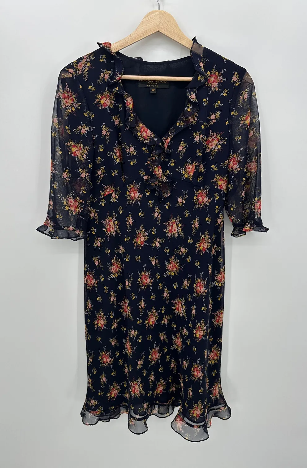 Donna Ricco Floral Midi Dress Size 10P Feminine Ruffle Dainty Modest Sheer Blue - $25 - From Taylor