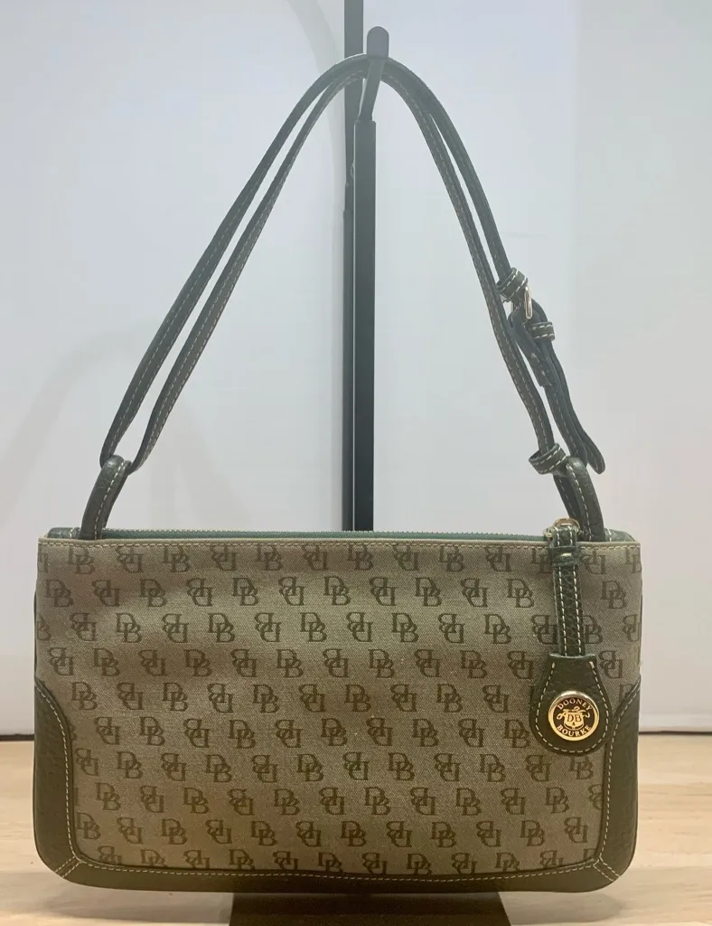 Dooney & Bourke DB Monogram Y2K Slim Zip Top Shoulder Bag 2-Way Clutch Green - $75 - From Laurel