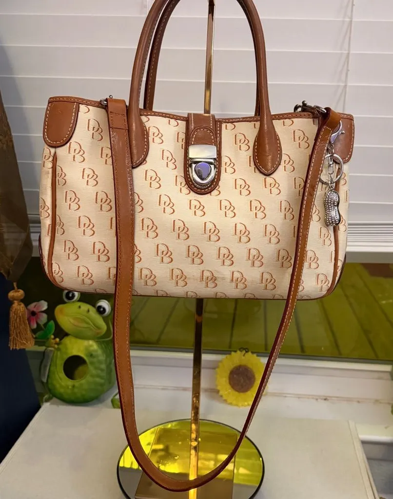Beautiful Dooney and Bourke monogram canvas trimmed in leather. A very easy purse to stay organized.... Show more