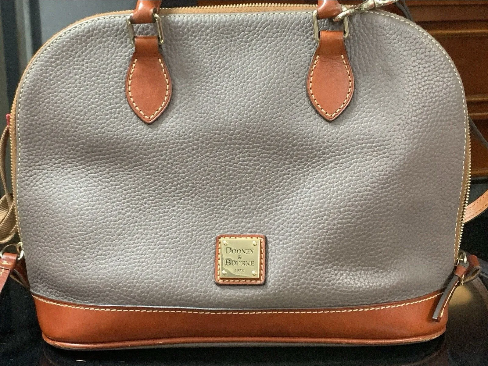 This Dooney & Bourke satchel features a charming elephant gray exterior with pebbled finish, adorned... Show more